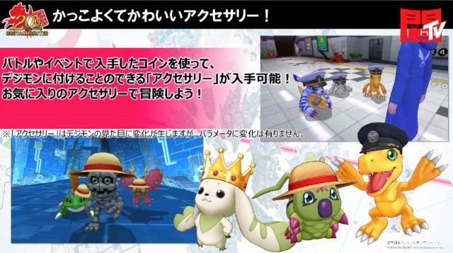 También se puede equipar accesorios como sombreros a los Digimon: